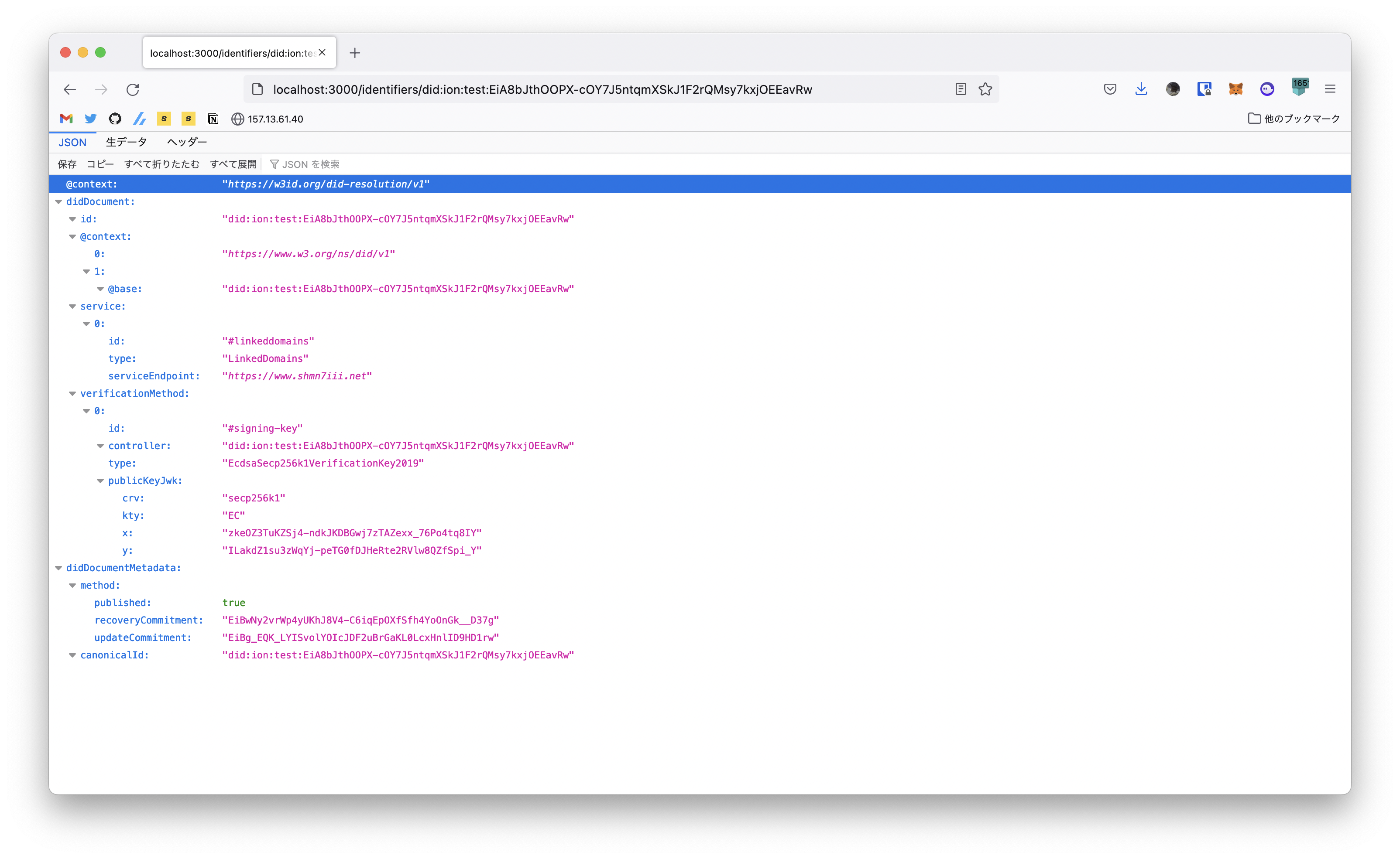 これで DID の発行は完了。ただしローカルで算出しただけ。
