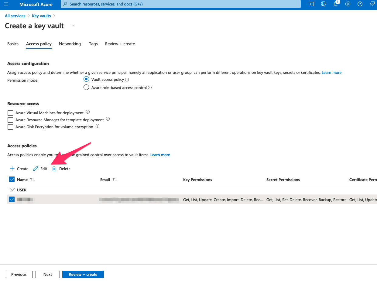 Next で出てくるアクセスポリシーを編集。