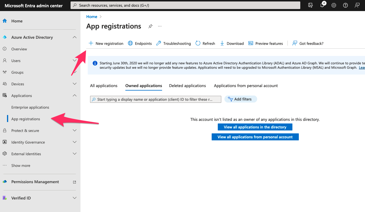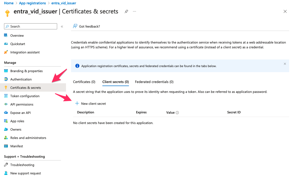 Issuer 用にアプリの登録を進める。