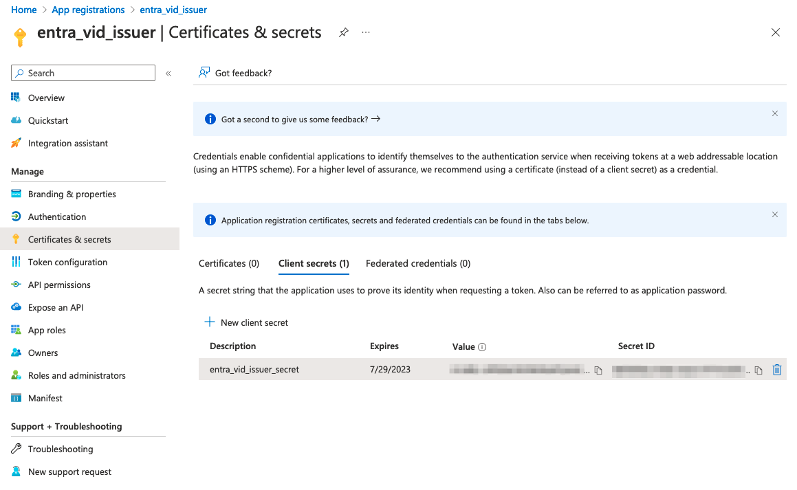 これで Client ID, Tenant ID が得られた。