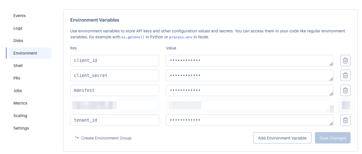 render の環境変数に集めた情報を書いていく。