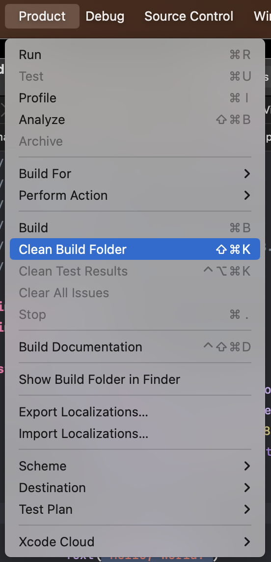 消したとしてもキャッシュ(?)が残るので「Clean Build Folder」が必要