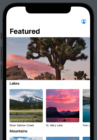 struct ContentView: View { @State private var selection: Tab = .featured enum Tab { case featured case list } var body: some View { TabView(selection: $selection) { CategoryHome() .tabItem { Label("Featured", systemImage: "star") } .tag(Tab.featured) LandmarkList() .tabItem { Label("List", systemImage: "list.bullet") } .tag(Tab.list) } } }